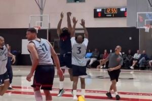 互不相让!哈登面对保罗飚进三分 后者底角空位回敬一球