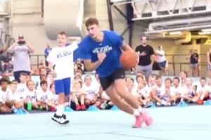 不讲武德啊!弗拉格训练营玩单挑 用出大风车劈扣吓懵小朋友