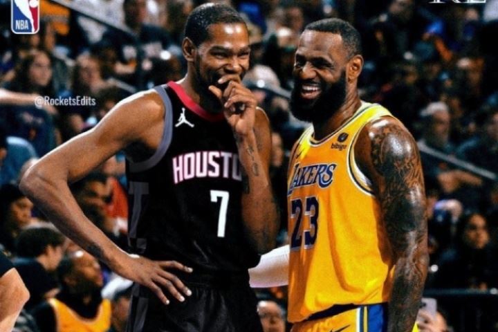 火箭媒体人Bradeaux晒出了火箭前锋凯文-杜兰特与湖人前锋勒布朗-詹姆斯的合成照,配文:“你想不到比这更好的圣诞大战了。”