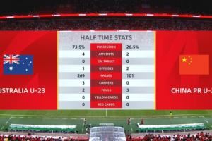 都没机会!半场数据:两队合计0射正,U22国足控球率不足3成