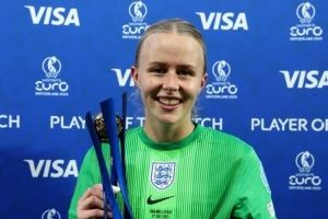体育资讯7月28日讯 女足欧洲杯决赛,英格兰女足点球力克西班牙女足,成功实现卫冕。效力于切尔西女足的门将汉普顿在点球决战中扑出两记点球,她也当选了决赛MVP。阿森纳女足大将凯莉攻入制胜点球。